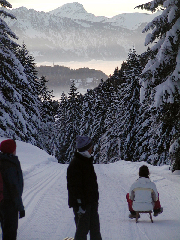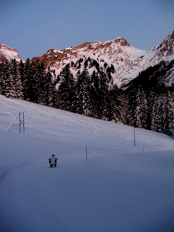 Late that afternoon we went sledding nearby and watched an alpine sunset.