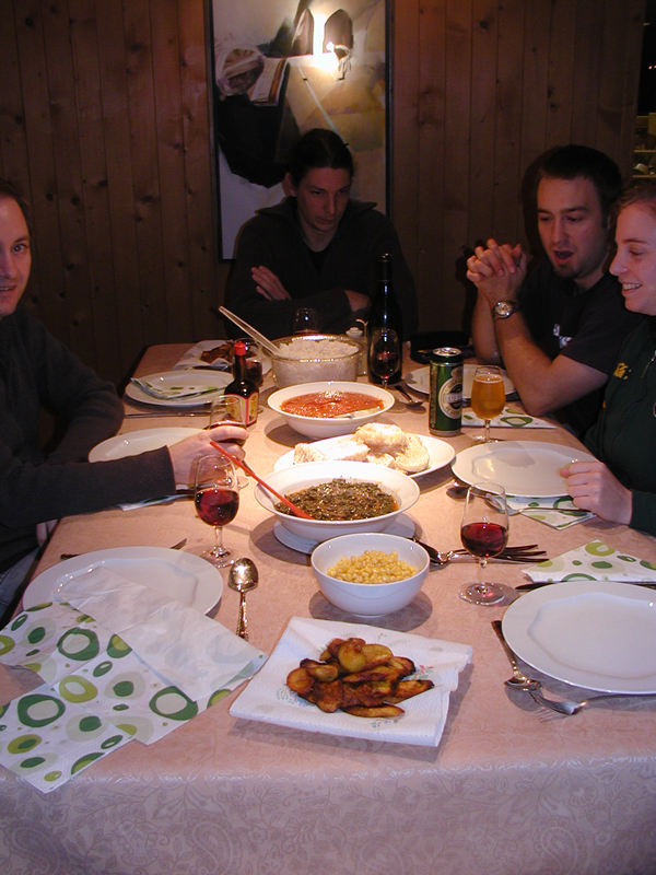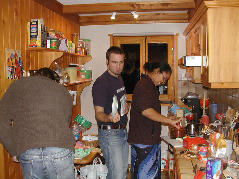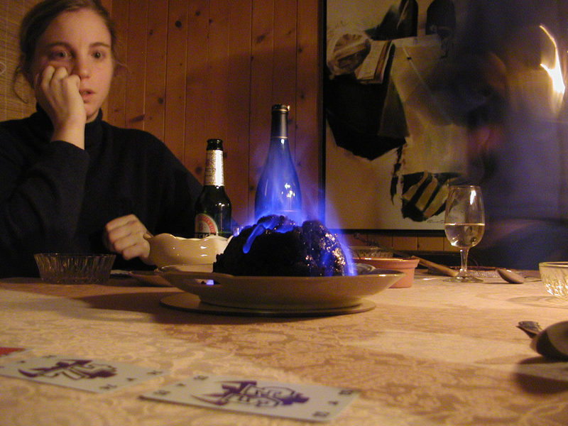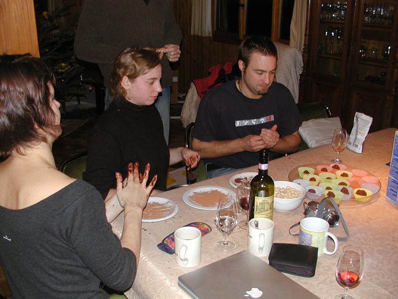 In the evening we ate traditional Finnish food, enjoyed feuerzangenbowle and exchanged Christmas gifts. The next day was a fairly quiet one, and while Leila and Lara went for a run in the snow the rest of us just lazed away. That evening saw the arrival of Jerome, making chocolate pralines, brilliant African cooking by Lara, a traditional English christmas pudding and a very strange card game indeed.